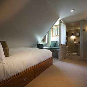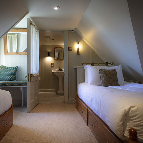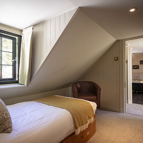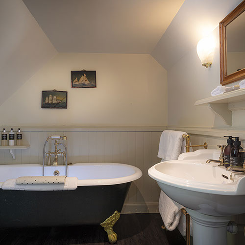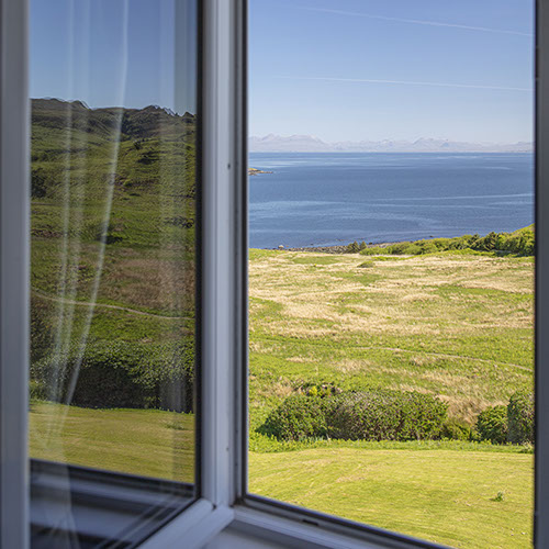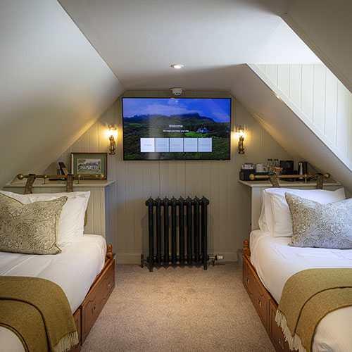 Our cosy attic rooms are located on the first floor of the Flora Macdonald Cottage, only a short distance from the hotel with wonderful views overlooking the sea to Flodigarry Island. Each room includes an en-suite bathroom with bath only and twin beds.