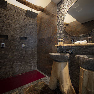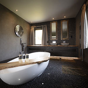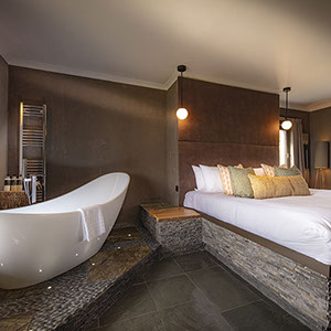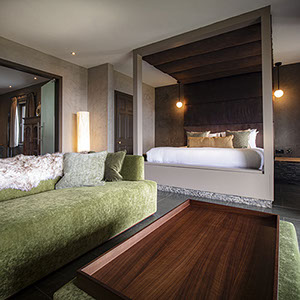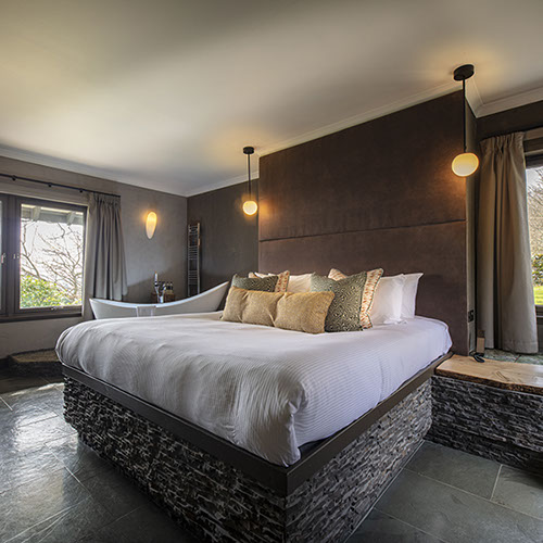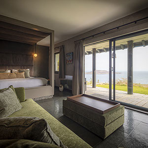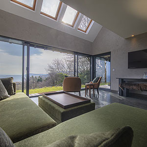 Our signature master suite offers 80 m2 of luxury with breathtaking panoramic sea views overlooking the Torridon mountains. Including an impressive living room with floor to ceiling windows, a master bedroom with super king size bed, a stunning double walk in shower, a separate soaking tub with a view, cloakroom and large private patio. Located a short distance from the main hotel.