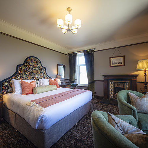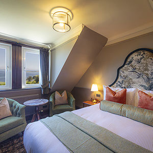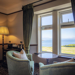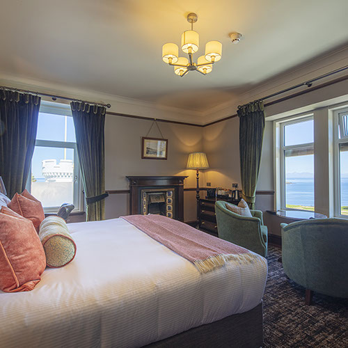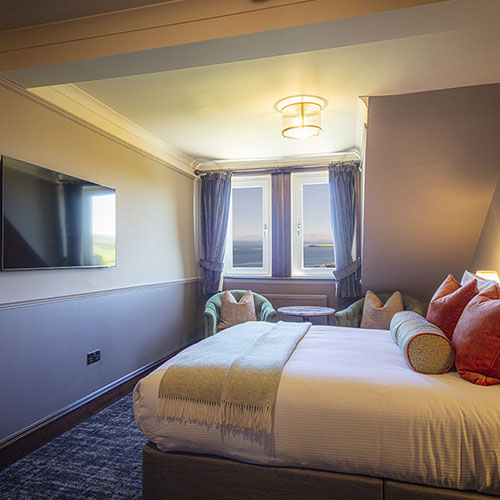 Our next tier of rooms are our premiers which feature king size beds and are located in the main hotel. Slightly smaller than our premier deluxe rooms but still as luxurious. Enjoy magnificent panoramic views of the sea towards the Torridon Mountains.