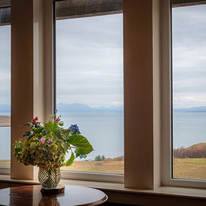 Located in the main hotel, this wonderfully unique large room features a super king bed with classical Victorian furniture. Boasting high ceilings and large windows looking over the sea to Staffin Bay and towards the Torridon mountains on mainland Scotland.