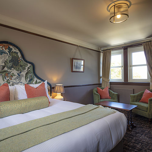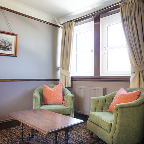 Located in the main hotel, these luxurious rooms offer super king size beds and a cosy seating area. Beautifully decorated to inspire relaxation. Guests staying in the superior rooms can also enjoy gorgeous mountain and garden views overlooking the famous Quiraing mountains and hotel grounds.